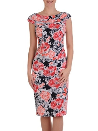 Sukienka damska Klarens XIV, wiosenna kreacja w wyszczuplającym wzorze.