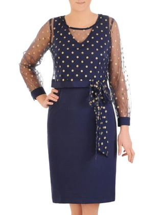 Komplet damski, prosta sukienka z tiulową narzutką w groszki 31832