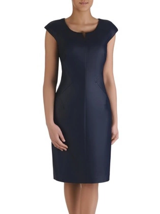 Prosta sukienka, granatowa kreacja z koronkowym tyłem 25971
