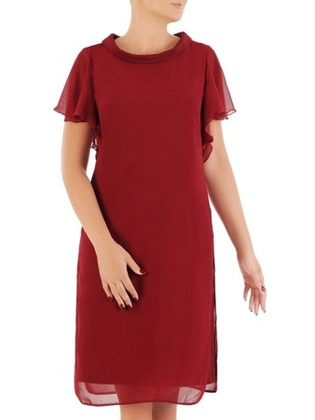 Oryginalna wizytowa sukienka, bordowa kreacja z kołnierzem 26779