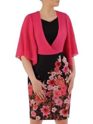 Elegancki komplet na wesele, komunię, wyszczuplająca sukienka w kwiaty z gładkim żakietem 39308
