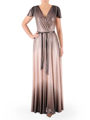 Sukienka na wesele, elegancka, rozkloszowana kreacja kopertowa z połyskiem 38203