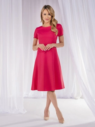 Koralowa sukienka damska na lato w rozkloszowanym fasonie 38107