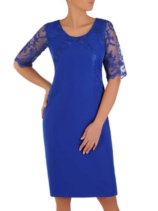 Elegancka chabrowa sukienka, kreacja z koronkowymi wstawkami 28219