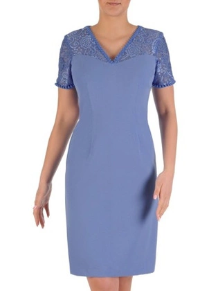 Sukienka wyszczuplająca Klementyna III, wizytowa kreacja z ozdobną wstawką z koronki
