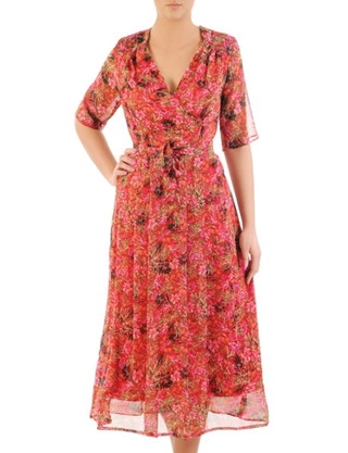 Kopertowa sukienka z modnymi falbanami, wizytowa kreacja na sezon letni 21538