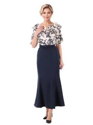 Sukienka wieczorowa na andrzejki, sylwestra, elegancka granatowa sukienka trapezowa z szyfonu, duże rozmiary 39031