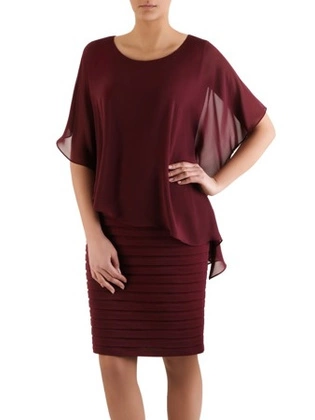Dwuwarstwowa sukienka z szyfonowym topem, kreacja maskująca brzuch 33545