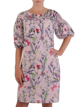 Wzorzysta sukienka z bufiastymi rękawami 16862