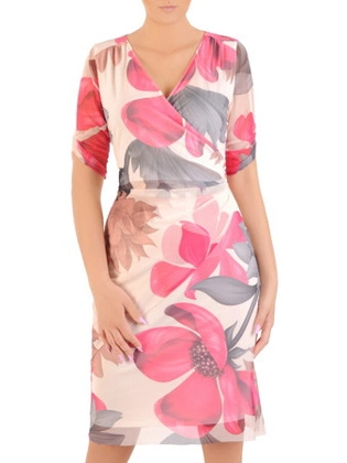Sukienka w wyszczuplającym fasonie, zwiewna kreacja w kwiaty 29916