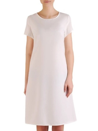 Biała sukienka midi z dekoltem w serek i wyszczuplającymi przeszyciami – elegancka kreacja podkreślająca sylwetkę 39541