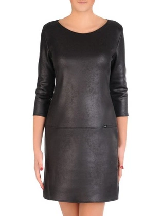 Elegancka, czarna sukienka z połyskującymi wstawkami 35123