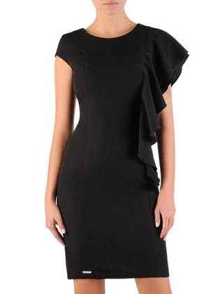 Elegancka sukienka z modną falbaną 17496, kreacja w kolorze czarnym.