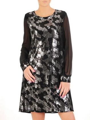 Prosta sukienka z dzianiny zdobiona połyskującymi dżetami 24276