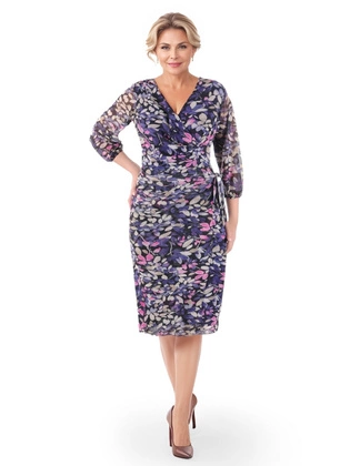 Wyszczuplająca sukienka z wzorzystej koronki 18240, wieczorowa kreacja z połyskiem.