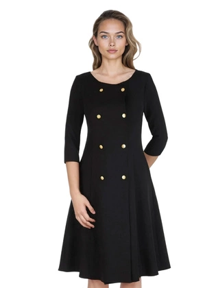 Sukienka z dwurzędowym zapięciem, elegancka kreacja z taliowaniem 18748