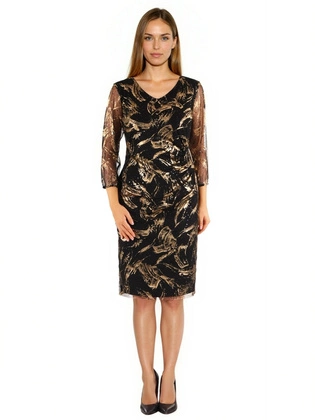 Sukienka wieczorowa czarno-złota z brokatem i rękawem 3/4 – elegancka sukienka na święta, sylwestra 40839