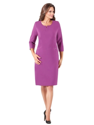 Sukienka damska, fioletowa sukienka midi z ozdobnym dekoltem, duże rozmiary 39268