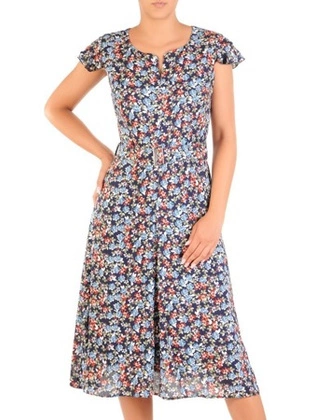 Sukienka w kwiaty, letnia kreacja z tkaniny bawełnianej 30173