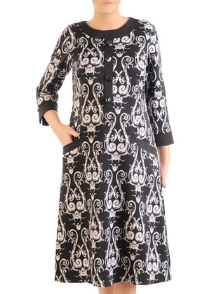 Luźna sukienka z tkaniny, zwiewna kreacja w modny wzór 33554