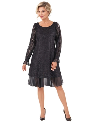 Koronkowa sukienka o trapezowym kroju, kreacja z falbanami 27386