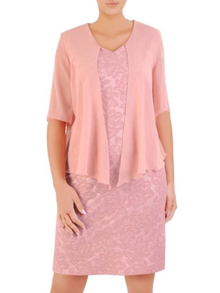 Żakardowa sukienka damska z szyfonową narzutką 32925