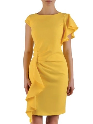Sukienka wyjściowa, żółta kreacja z ozdobnymi falbanami 25107