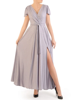Wieczorowa, kopertowa suknia maxi z połyskującego materiału 34540