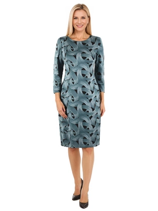 Wyszczuplająca sukienka z oryginalnym wzorem – dzianinowa sukienka na jesień 40440