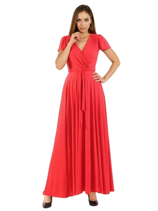 Wieczorowa, kopertowa suknia maxi z połyskującego materiału 34529
