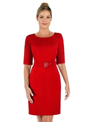 Sukienka damska Akira III, czerwona kreacja z paskiem podkreślającym talię.