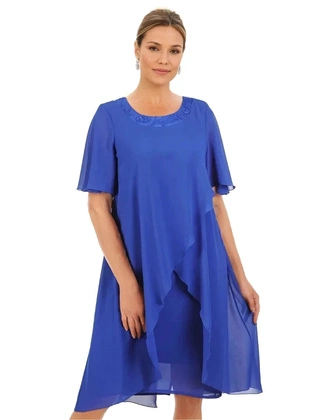 Trapezowa sukienka z szyfonu, kreacja z ozdobnymi mankietami 24279
