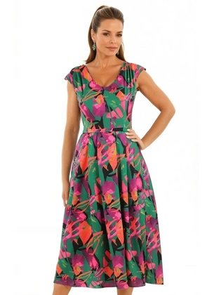 Sukienka damska 15315, zwiewna kreacja w wyszczuplającym wzorze.