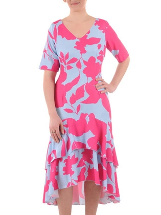 Rozkloszowana sukienka z falbankami, kreacja jesienna 27362