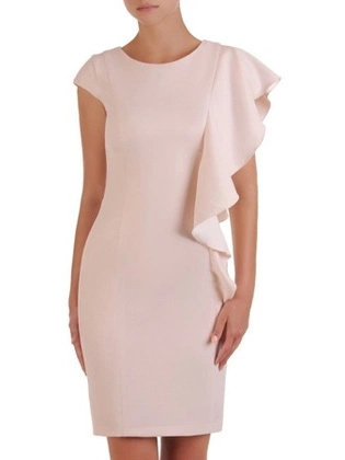 Sukienka wizytowa, pudrowa kreacja w kobiecym fasonie 20993.