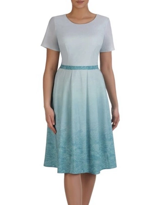 Elegancka sukienka z ozdobnymi plisami 15403, wiosenna kreacja z cieniowanej tkaniny.