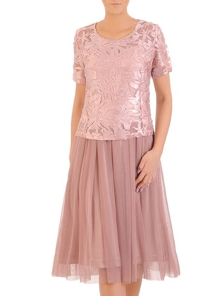 Żakardowa sukienka damska z szyfonową narzutką 32925