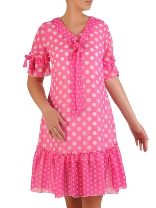 Sukienka w luźnym fasonie, zwiewna kreacja w groszki 26120