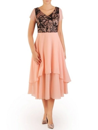 Wyjściowa sukienka z szyfonu, zwiewna kreacja z falbanami 29786