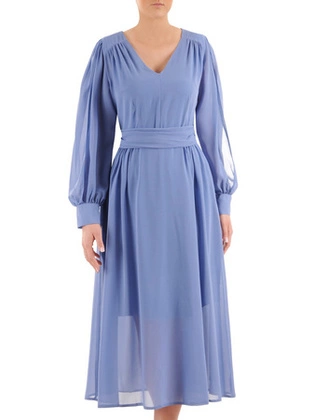 Zwiewna szyfonowa sukienka z ozdobnym wycięciem na rękawach 35367