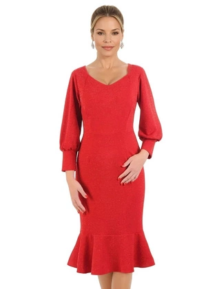 Elegancka sukienka czerwona, kreacja z oryginalnymi rękawami 28555