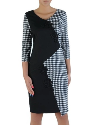 Modna sukienka z asymetryczną wstawką w pepitkę 17249.
