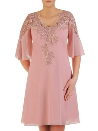 Wieczorowa trapezowa sukienka wykończona modną koronką 25169