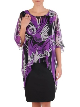 Sukienka wyszczuplająca 2w1 , prosta kreacja z luźną narzutką 16885