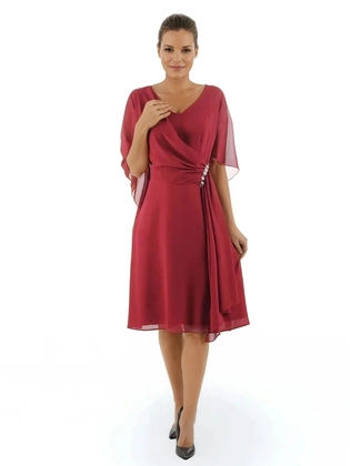 Pudrowa sukienka plus size z szyfonu z ozdobnymi rękawami 38747