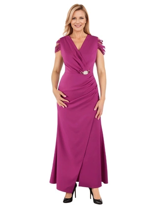 Elegancka sukienka wieczorowa fuksja – długa sukienka na sylwestra, wesele lub studniówkę, fason wyszczuplający 40716