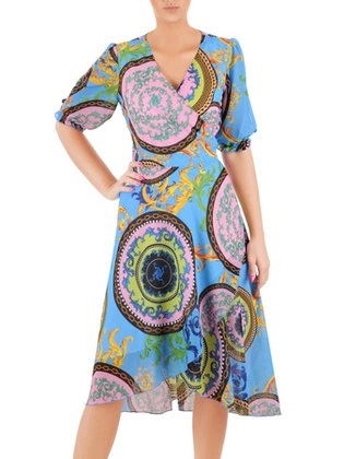 Wyszczuplająca sukienka z kopertowym i ozdobnie wyciętym dekoltem 34676