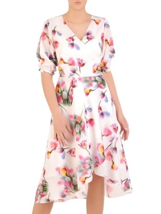 Wyjściowa, zwiewna sukienka w kwiaty z kopertowym dekoltem 30395