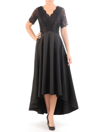 Sukienka koktajlowa maksi, czarna kreacja z koronkową górą 30731