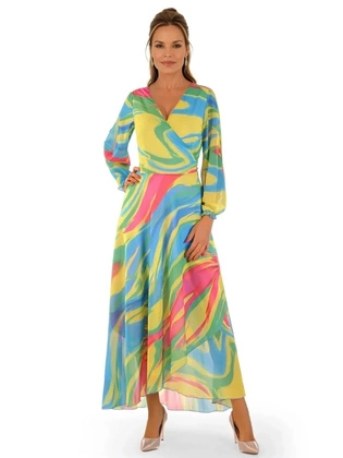 Letnia sukienka kopertowa, kreacja z rozkloszowaną spódnicą 33663